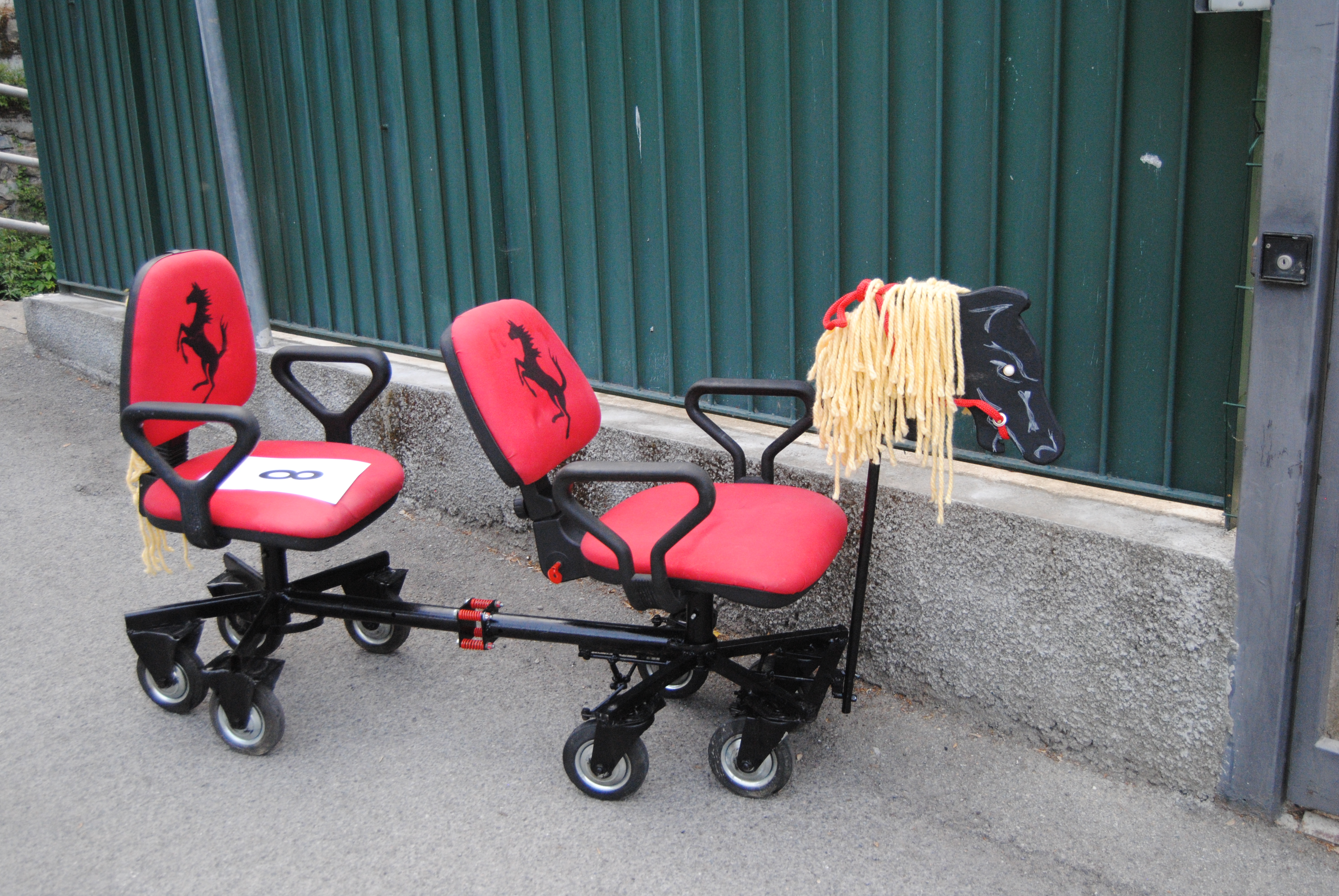 sedie da ufficio e sedie auto costruite che percorreranno una pista a