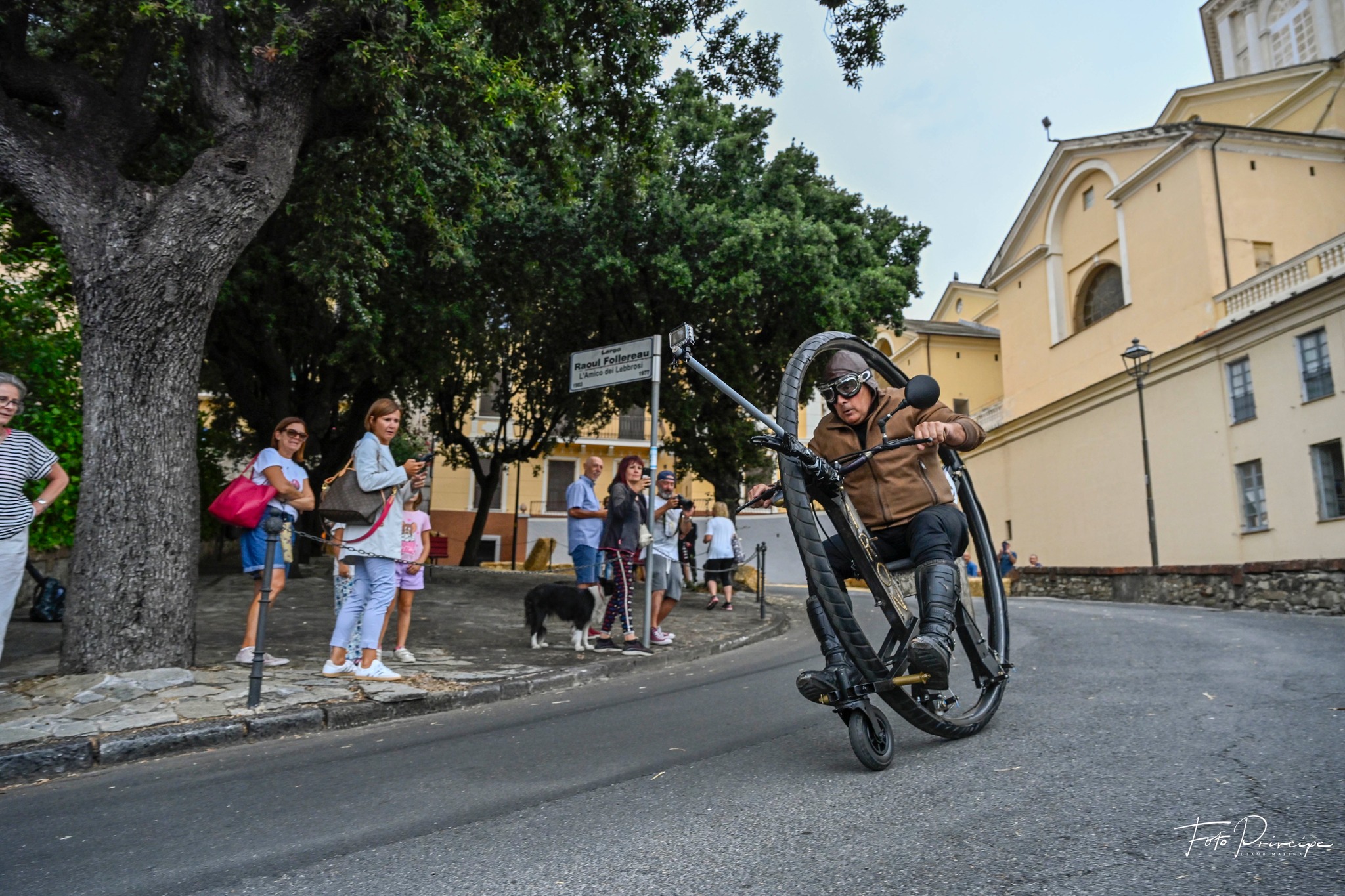 velivolo costituito sì da due ruote, ma con la minore posta all'interno