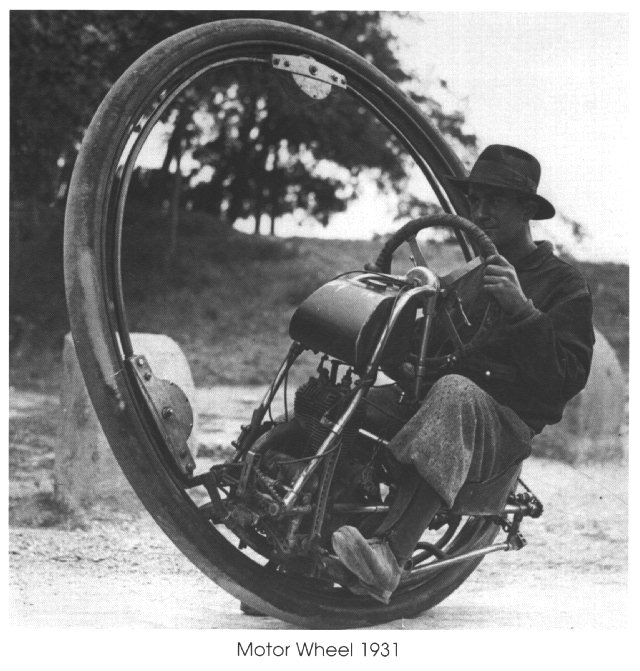 eseguite inclinando il motoveicolo." Derivata dalla monoruota mediante l'applicazione di un propulsore a quel tipo di velocipede, la prima motoruota della quale si abbia notizia certa fu realizzata nel 1903 e presentata al Salone dell'automobile di Torino del 1904, dall'azienda milanese Garavaglia.